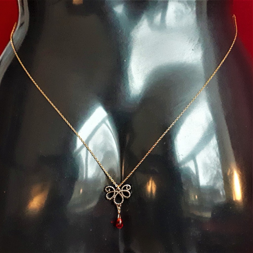 Alliage argenté sombre, acier inoxydable plaqué or, perles en verre rouge