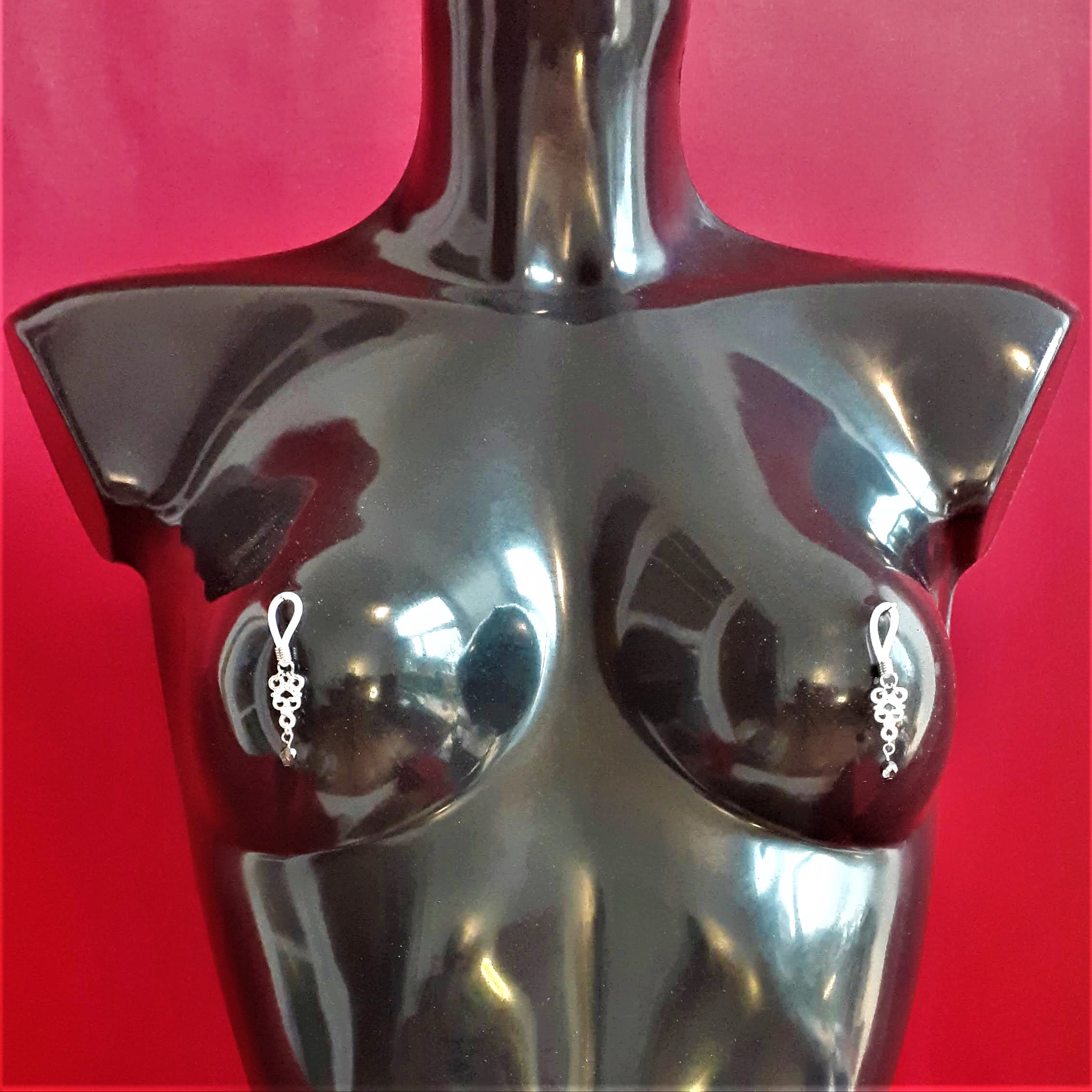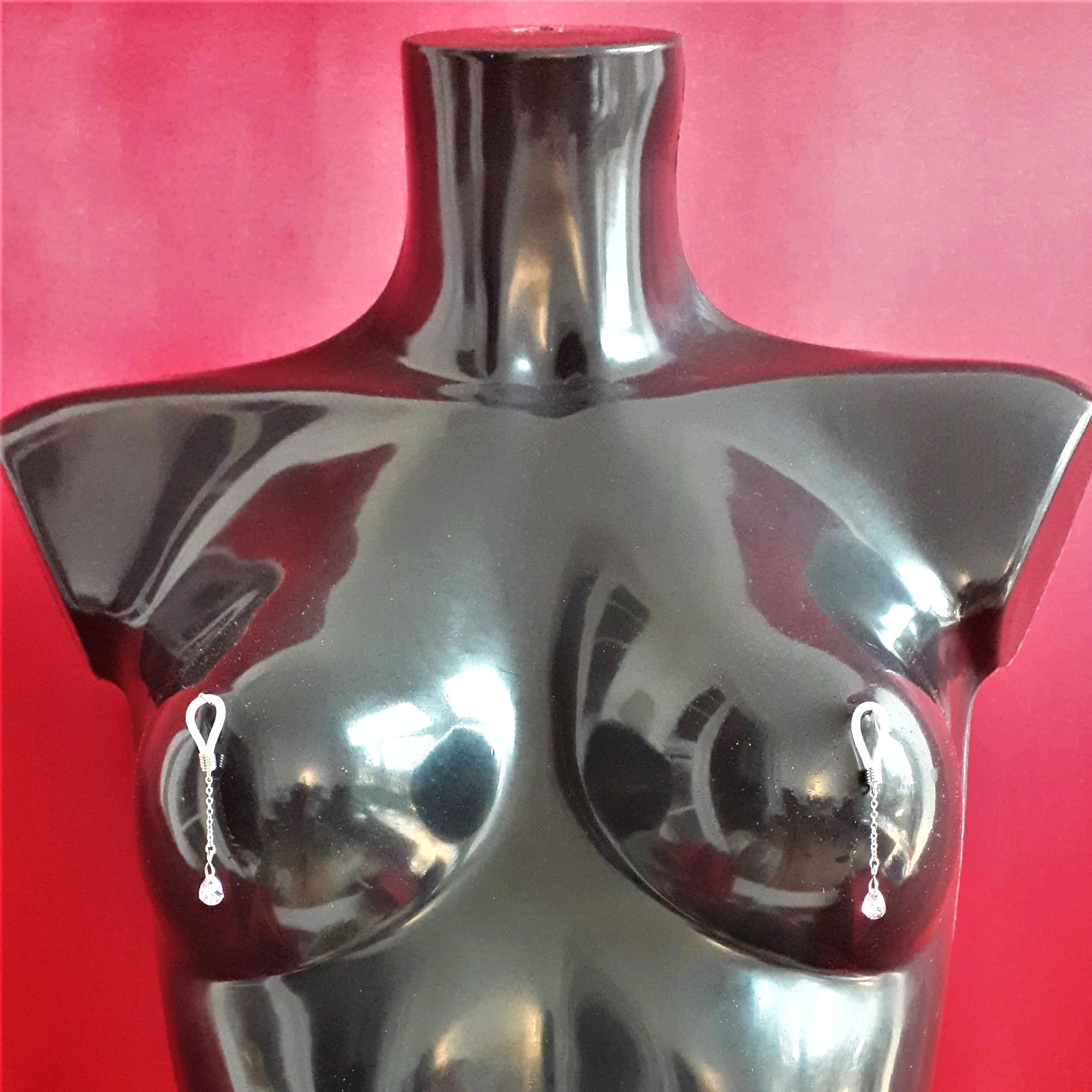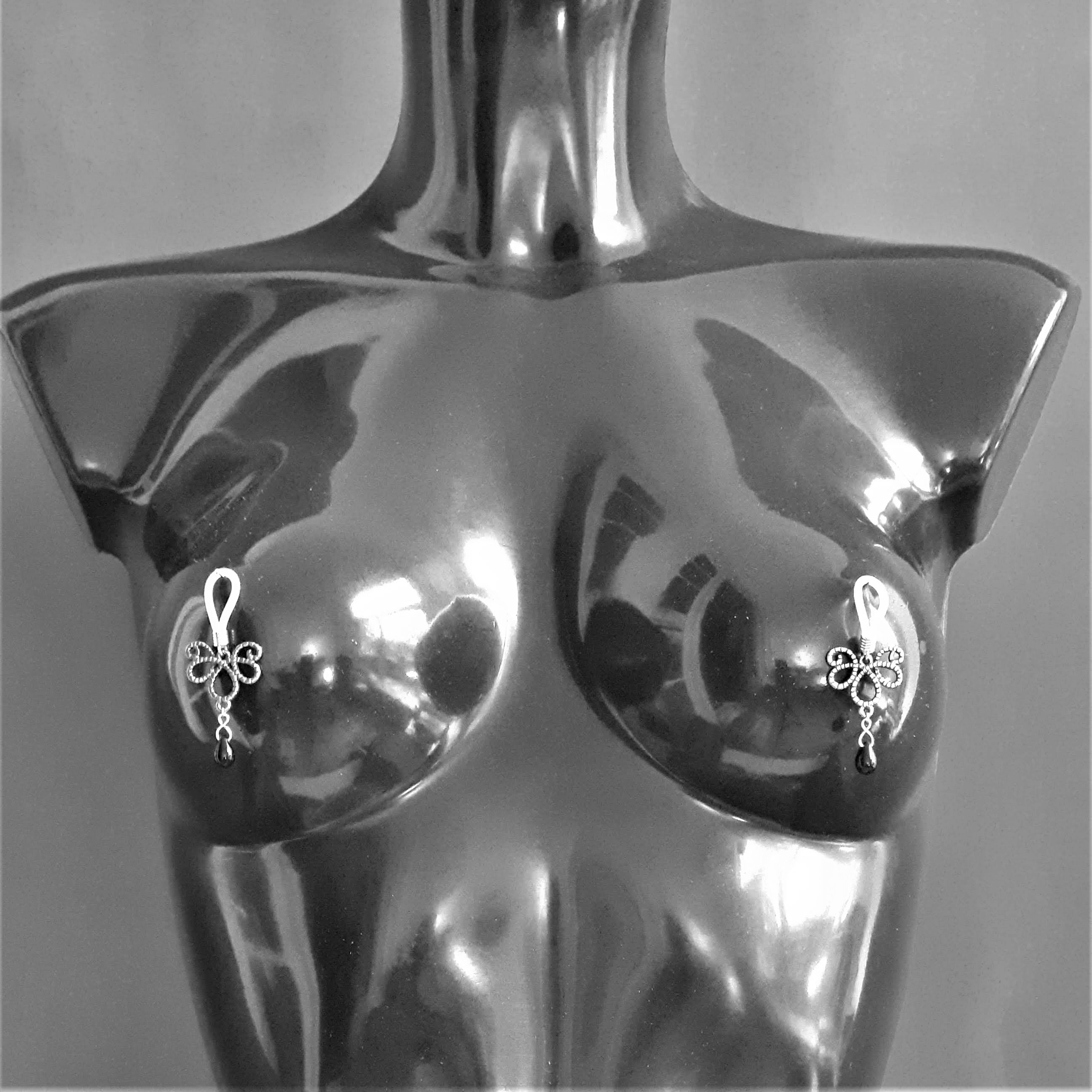 Les boucles de seins s’attachent aux tétons pour mettre en valeur la gorge et les seins. Elles sont agrémentées de pièces d’alliage argenté ou doré, de gouttes, de perles ou d’étoiles et ne contiennent ni nickel, ni plomb, ni cadmium. Toutes les boucles peuvent se placer sur un piercing de téton.