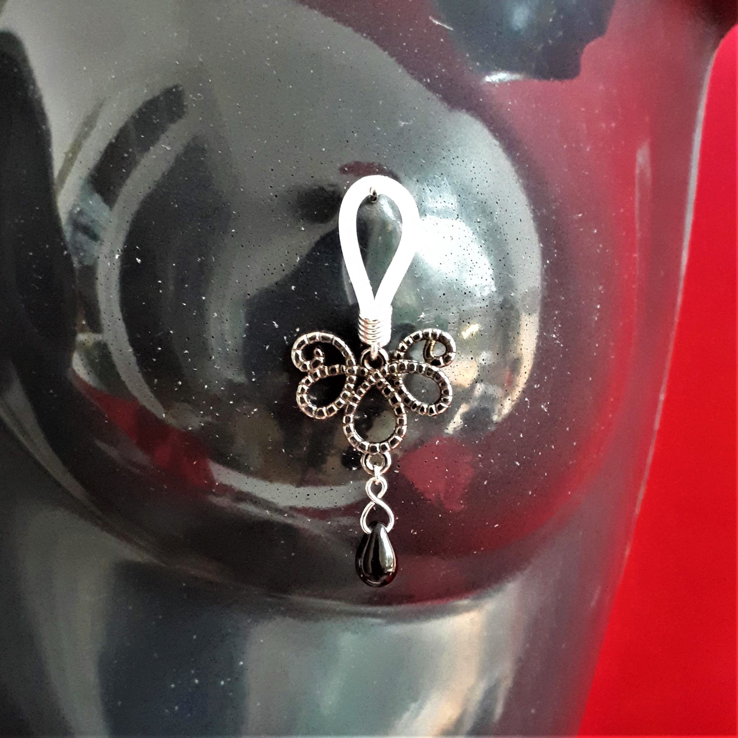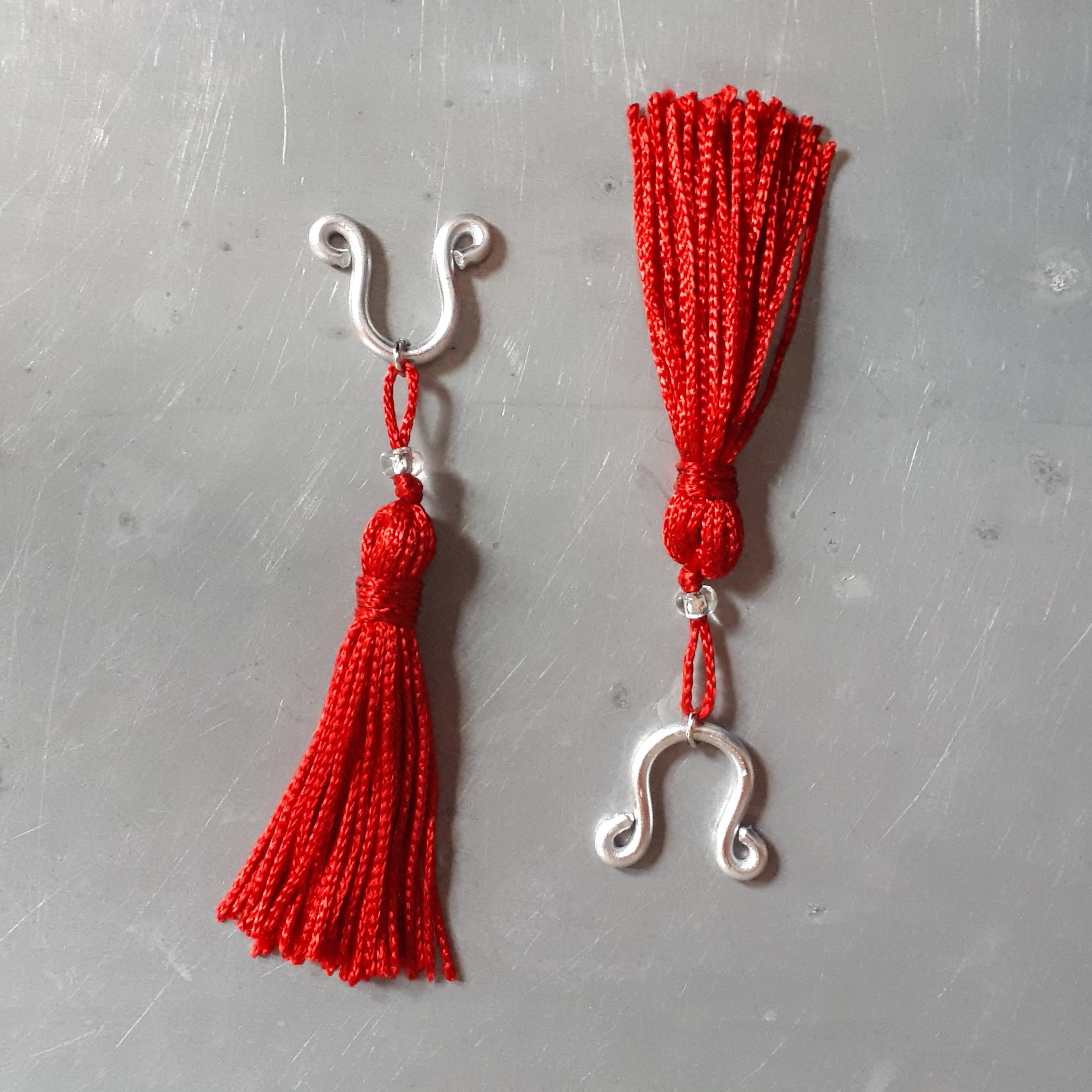 Pompon rouge, perle argentée