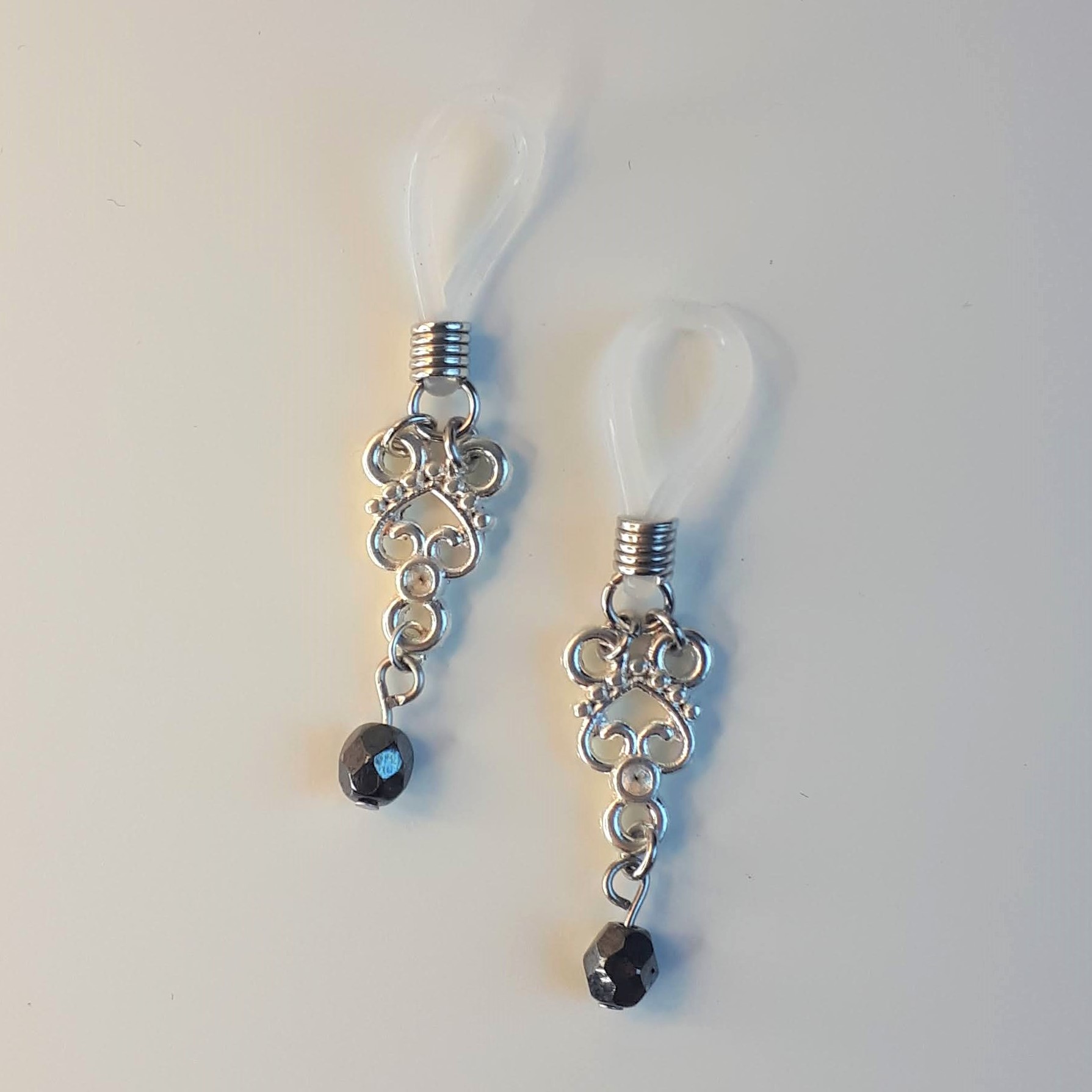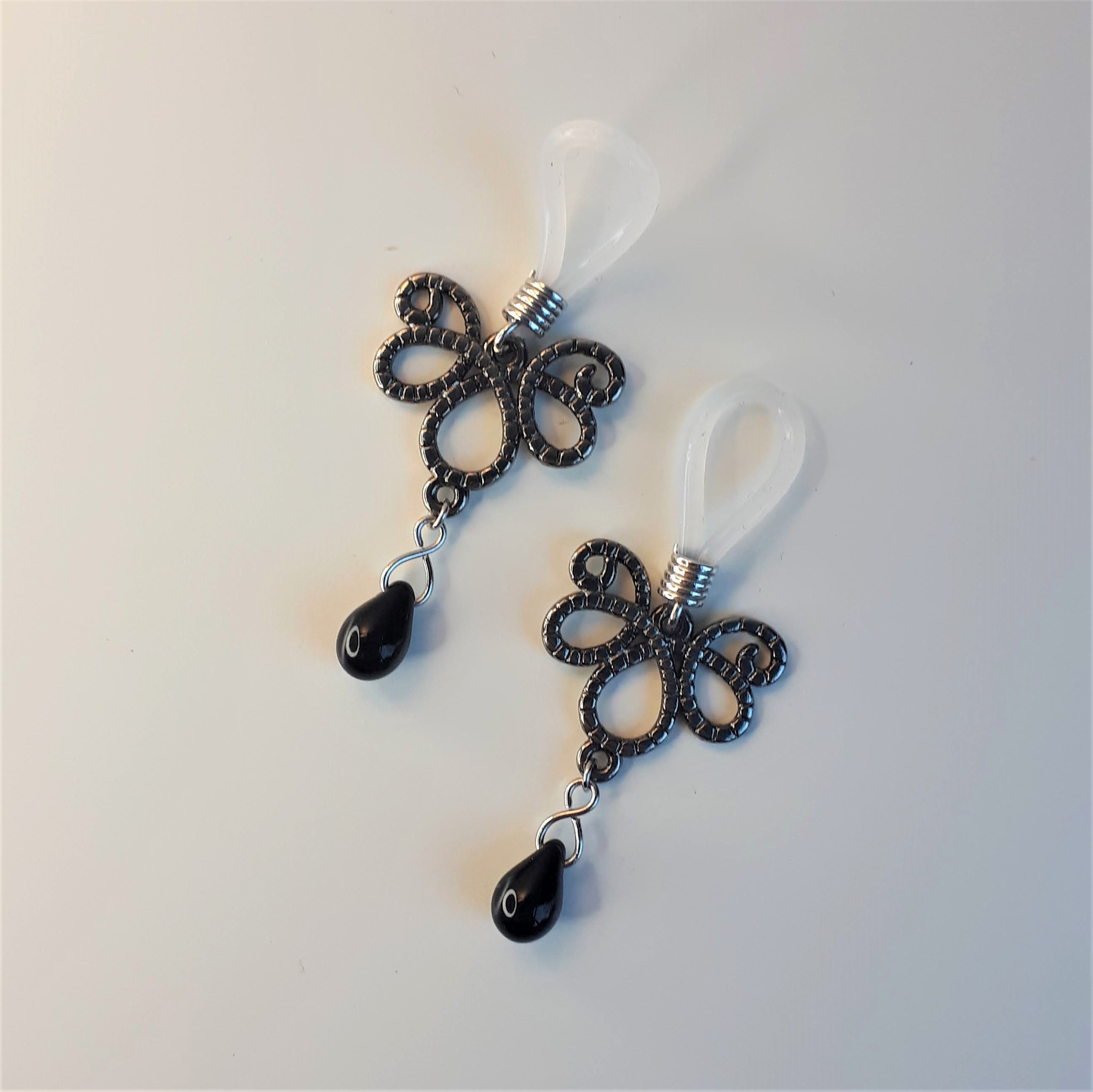 Alliage argent foncé et perles en verre noir