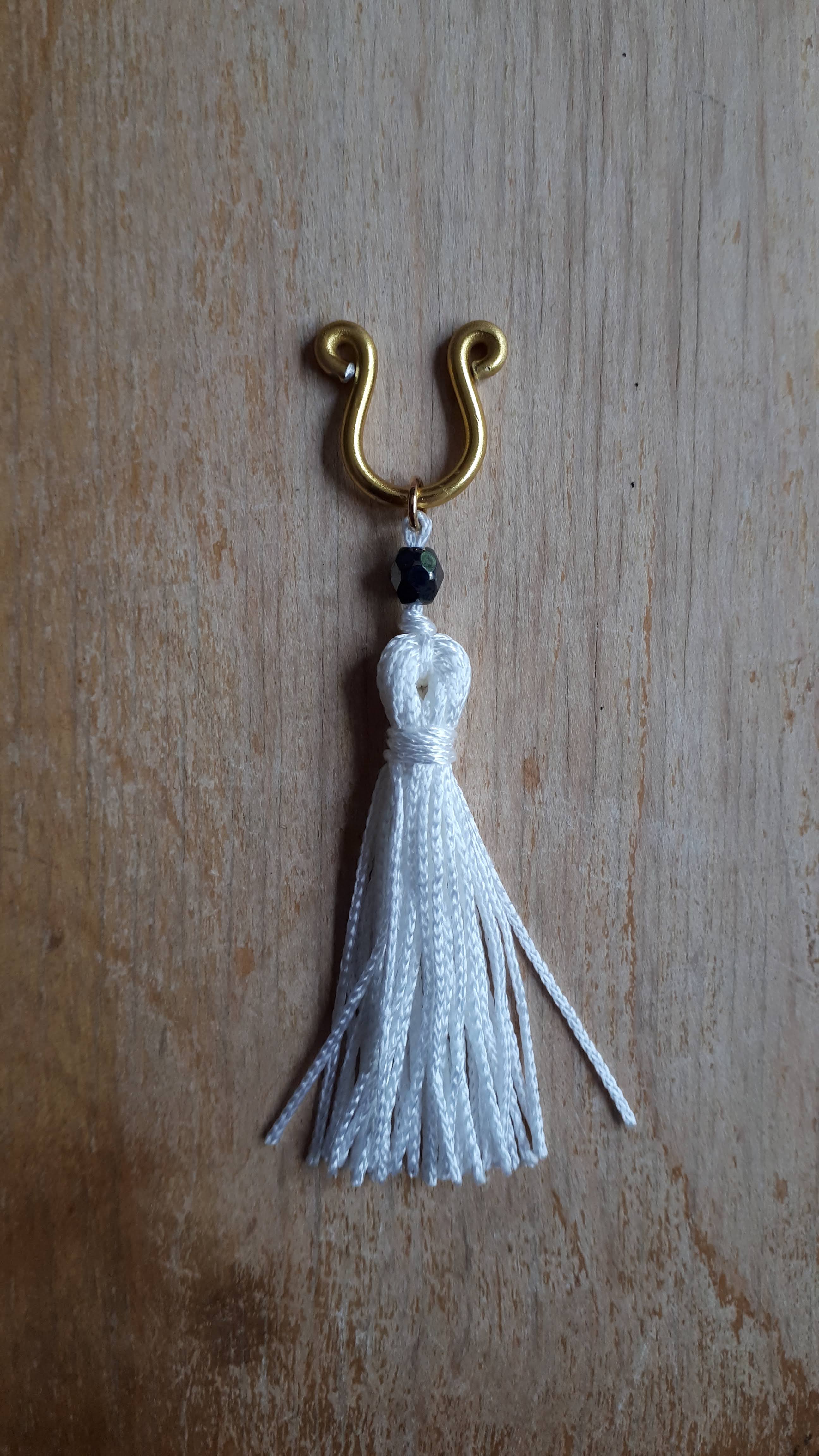 Pompon blanc, perle noire ou grise