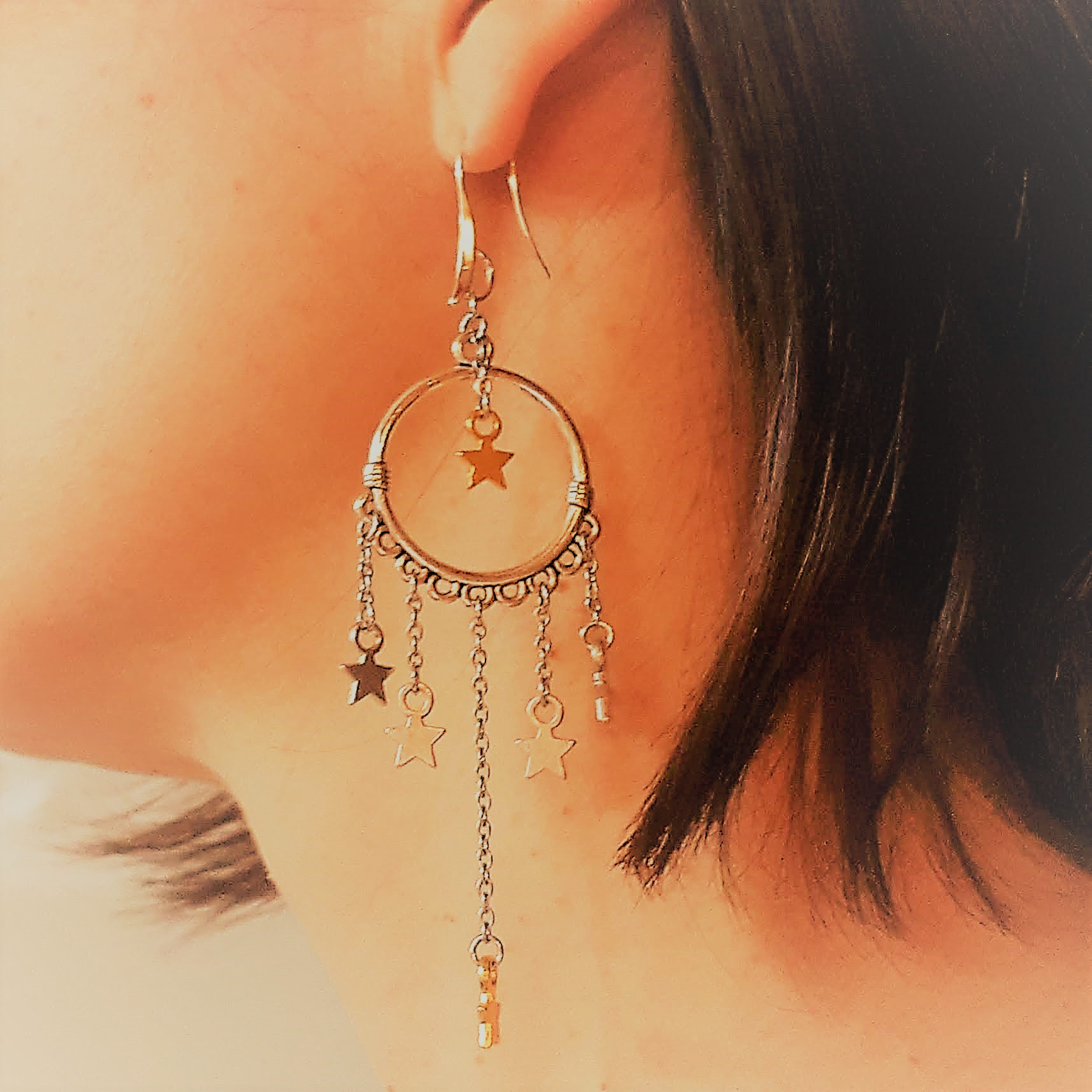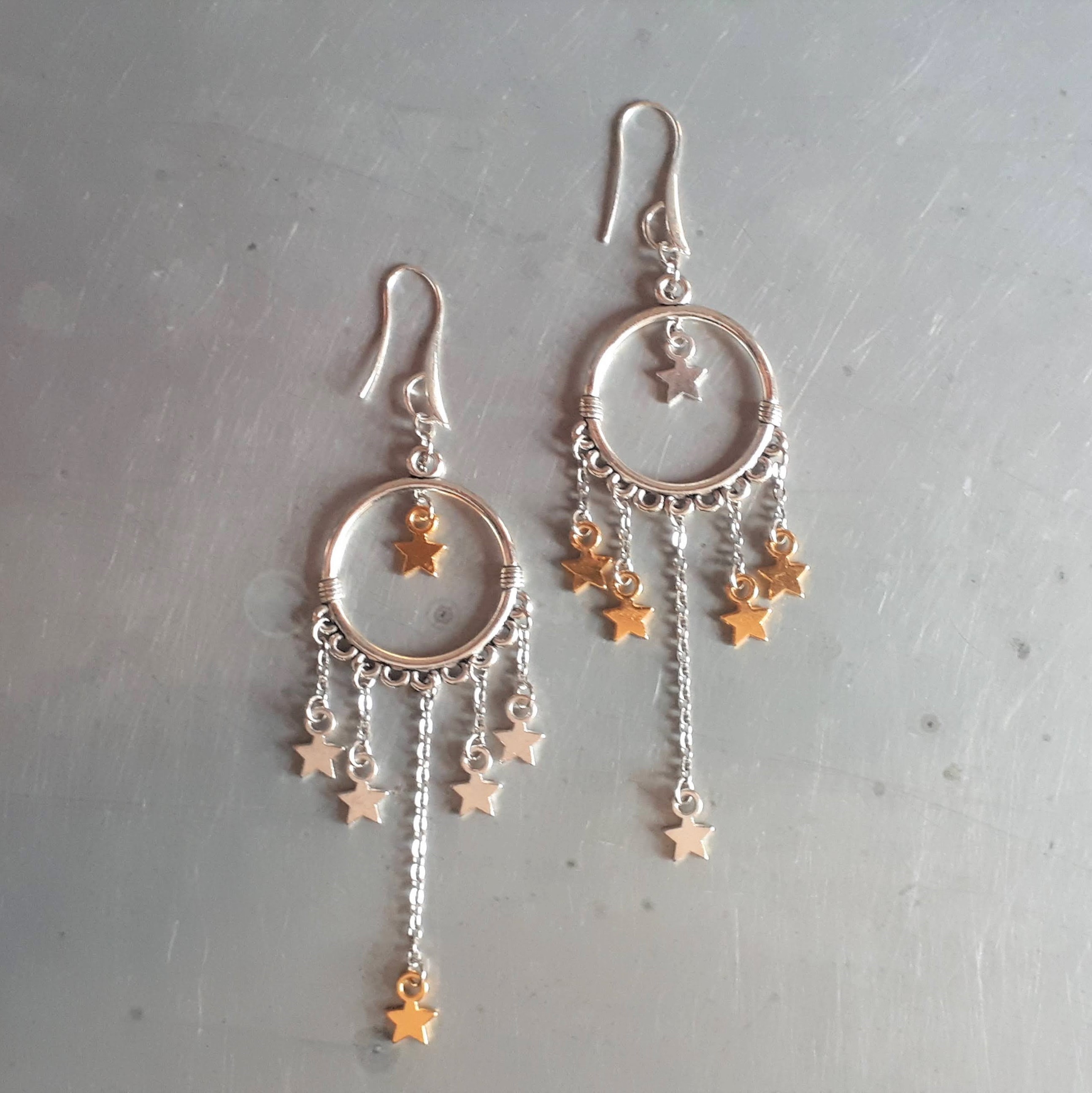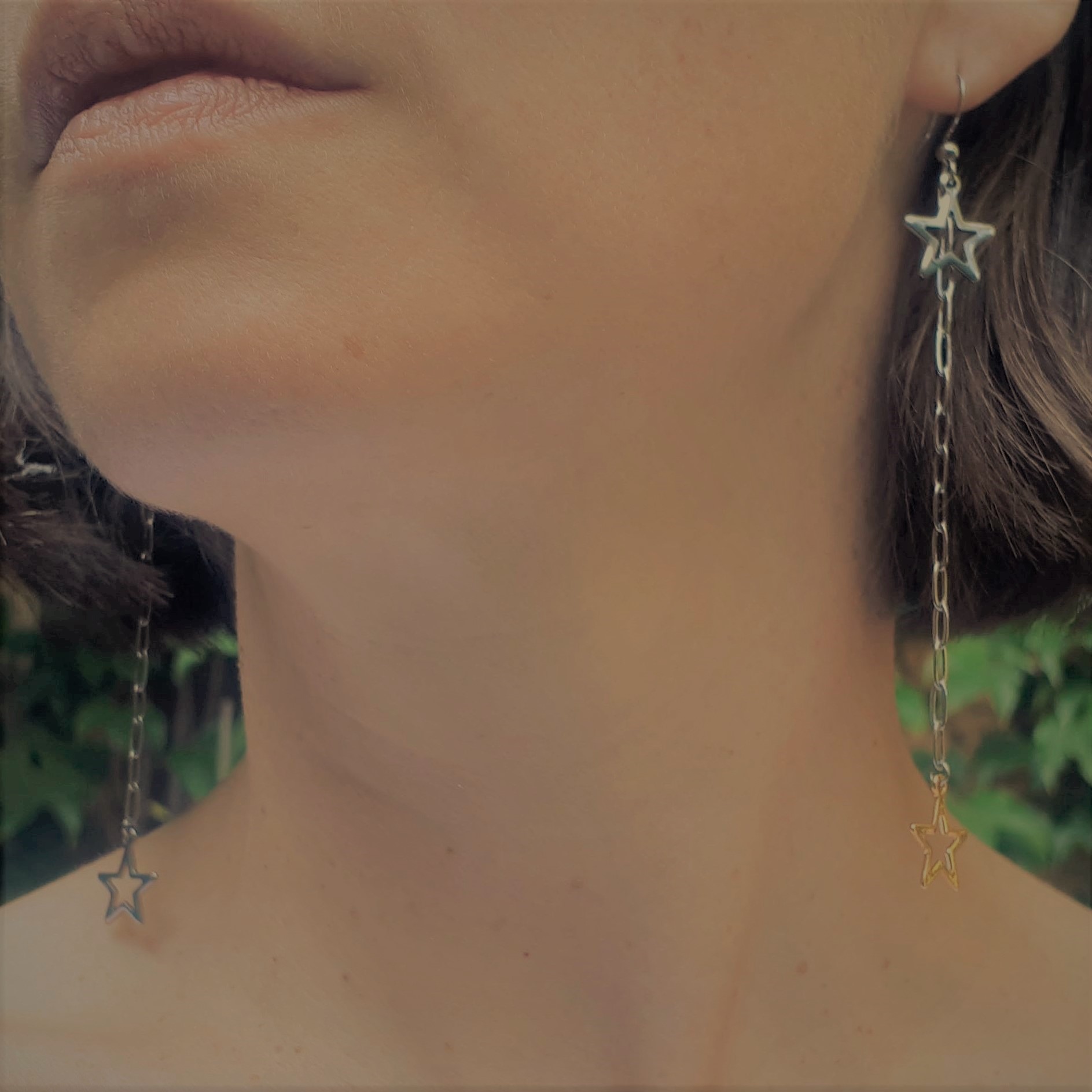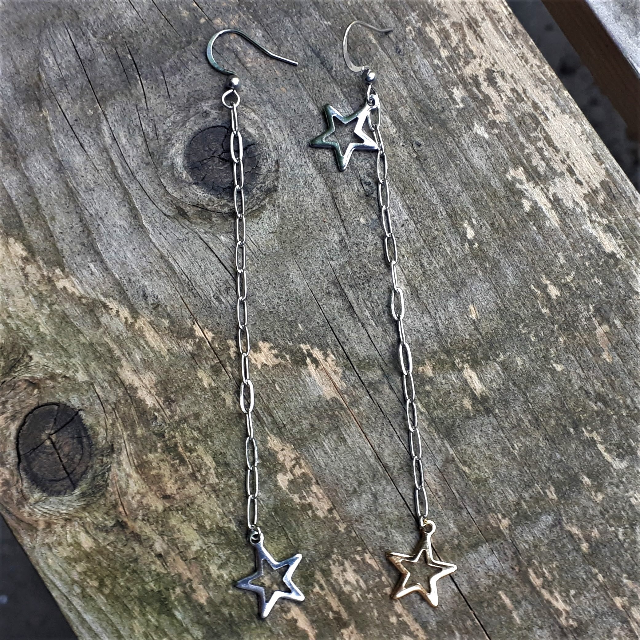 Alliage argenté, chaîne en acier inoxydable, étoiles dorées et argentées Attaches d’oreille en alliage argenté Dépareillées