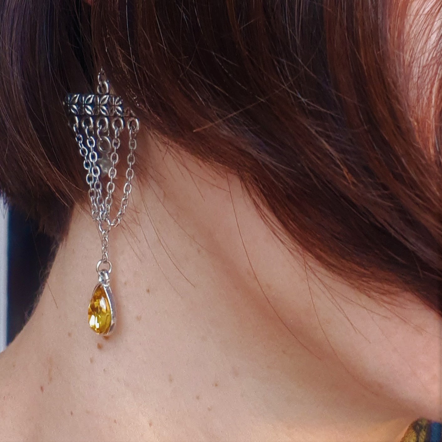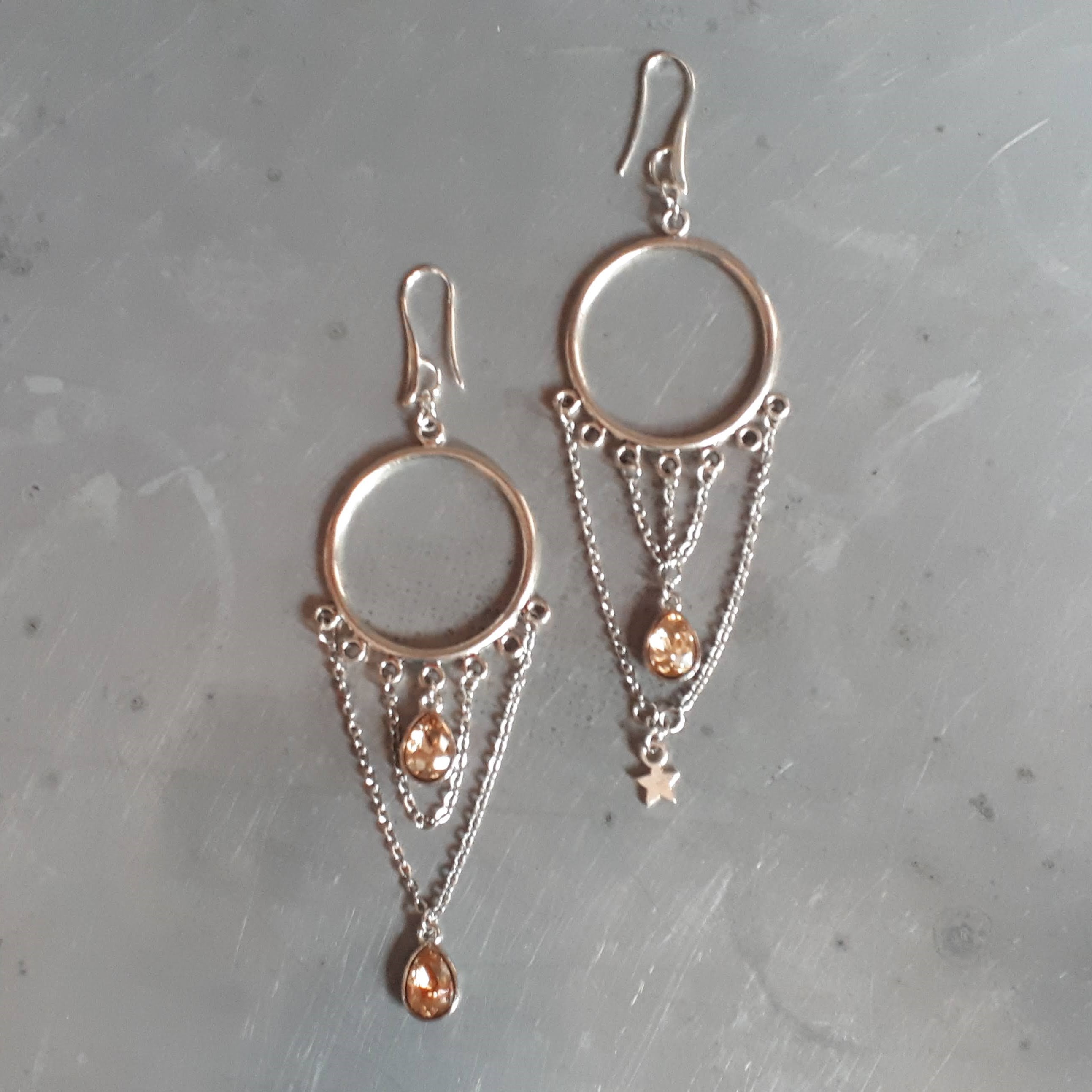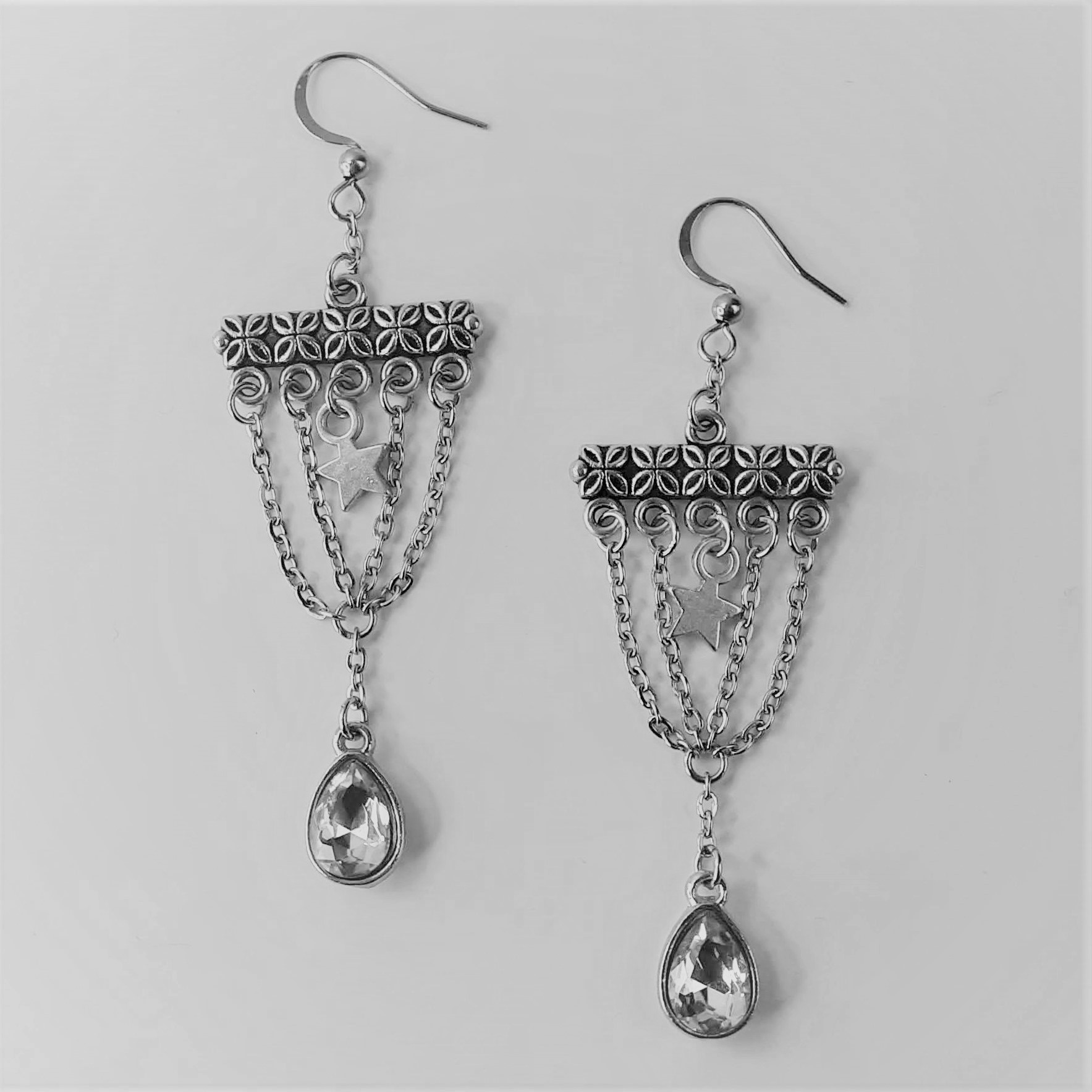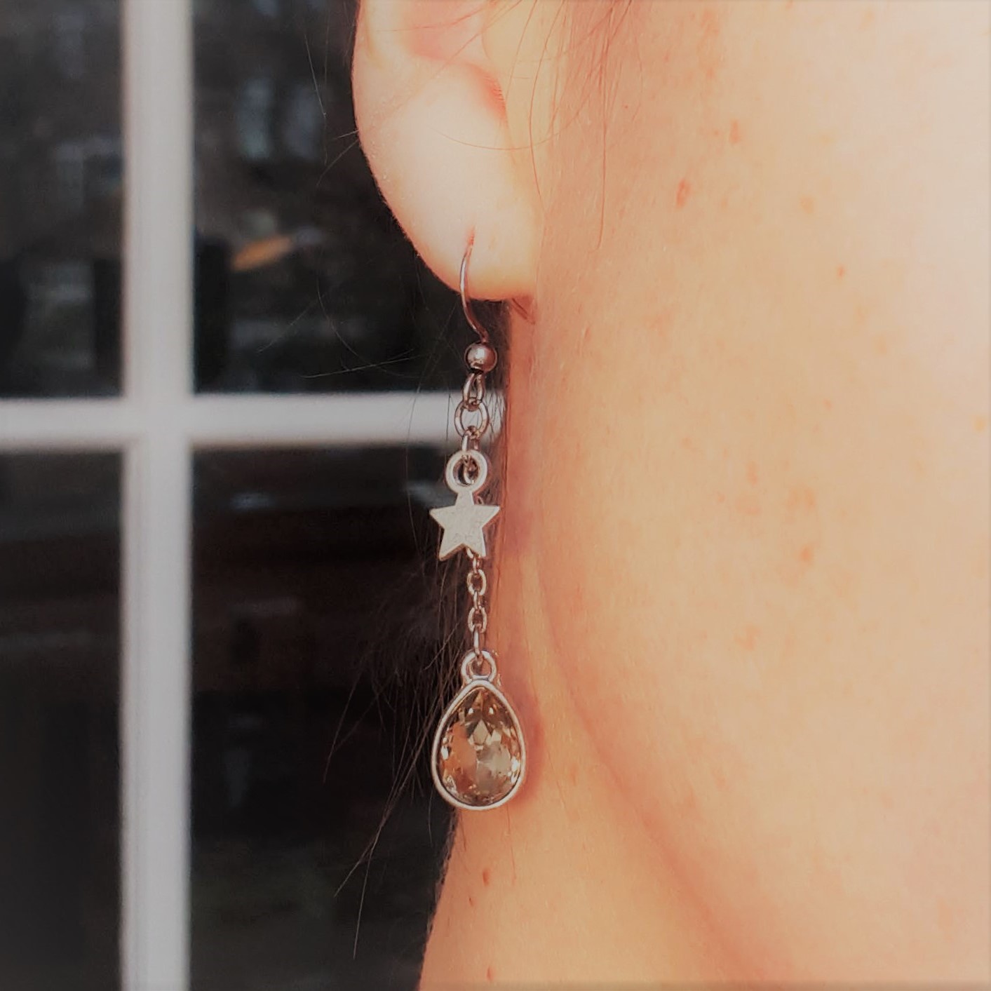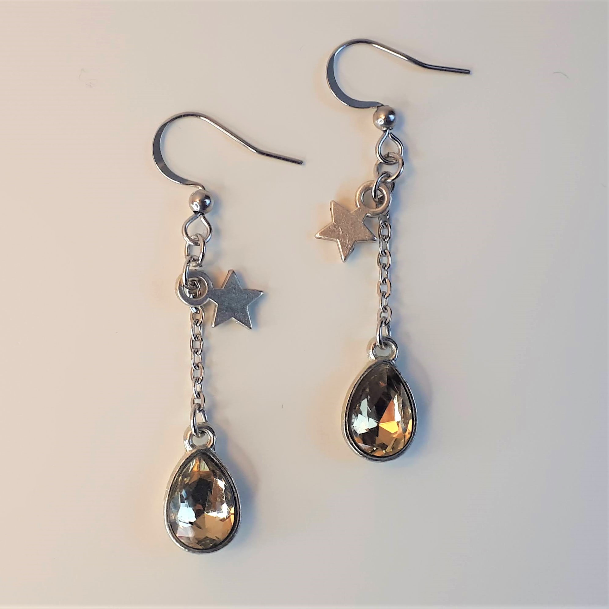 Chaîne et étoiles en acier inoxydable et gouttes jaune pâle Attaches d’oreille en acier inoxydable