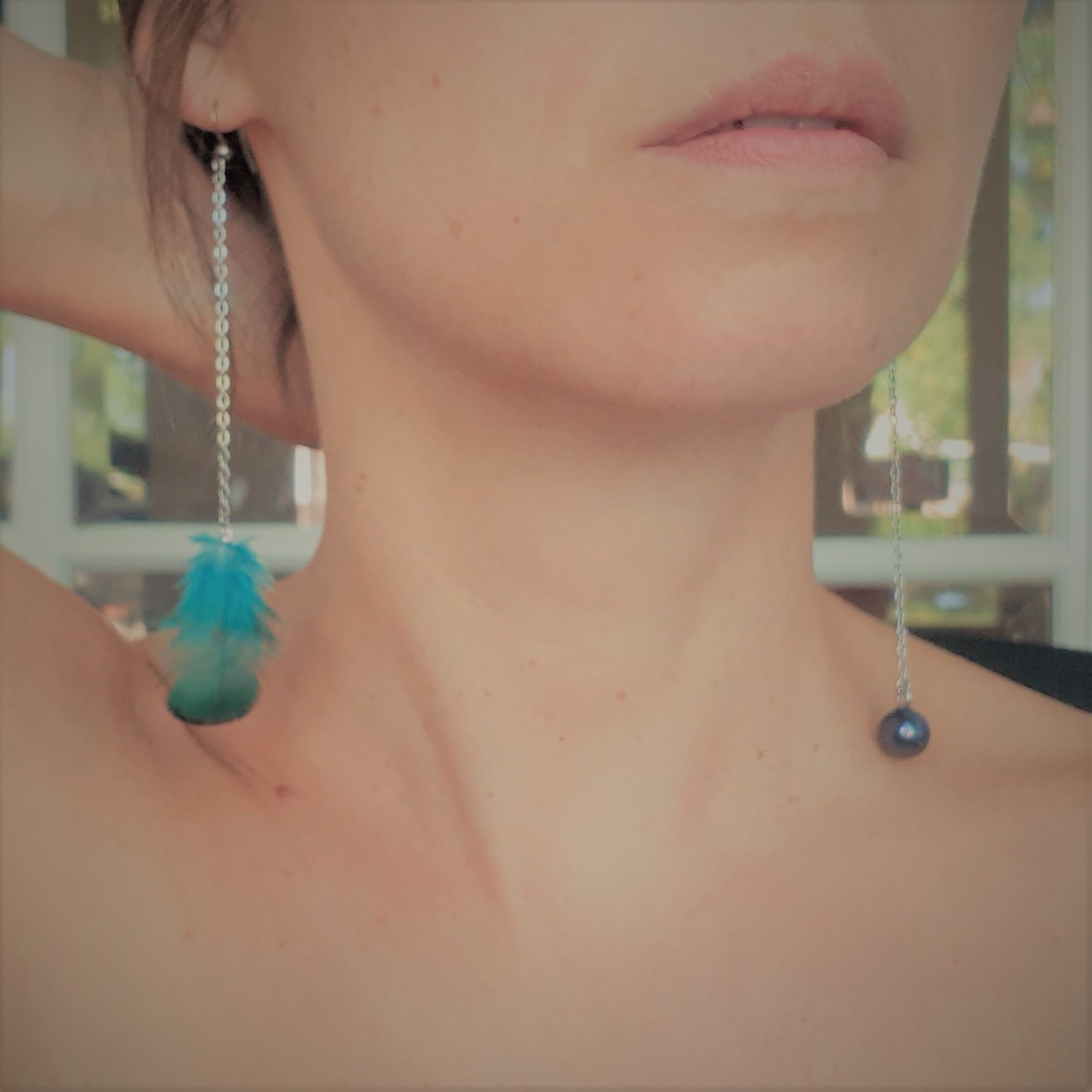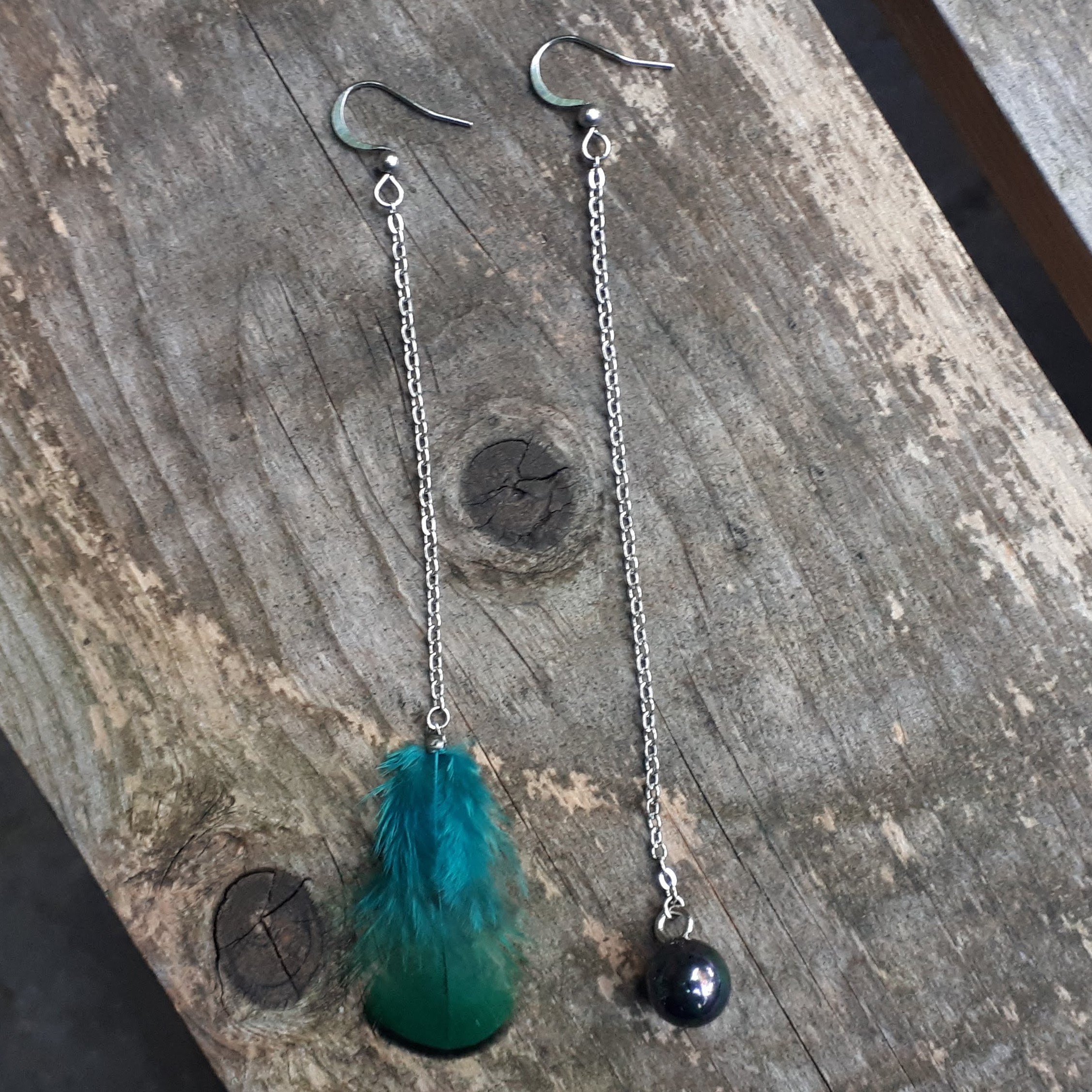 Acier inoxydable, perle et plume Attaches d’oreille en acier inoxydable Dépareillées