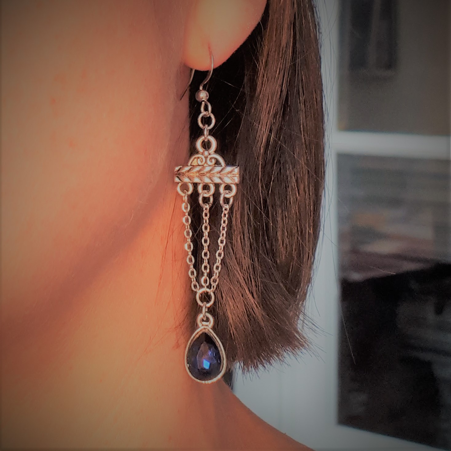 Goutte mauve Attaches d’oreille art nouveau en alliage argenté Assorties au collier de seins Sacha