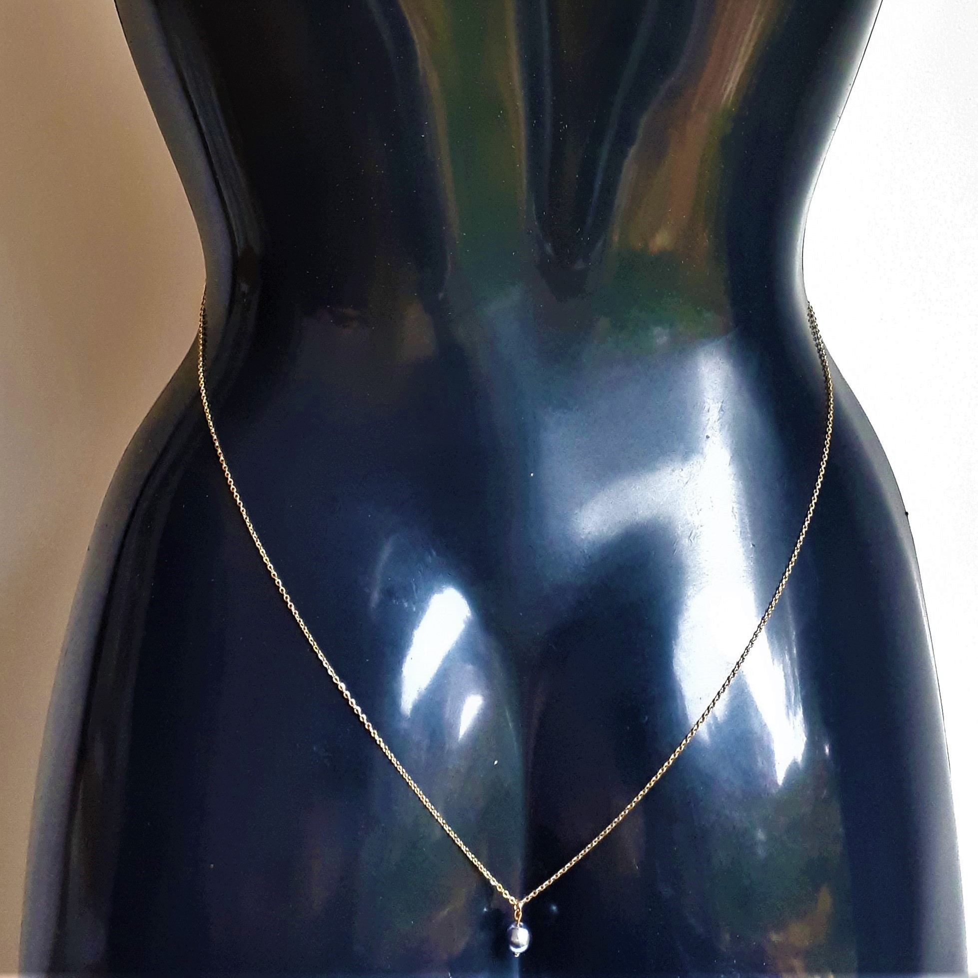 66€ Alliage argenté ou doré, chaîne en acier inoxydable naturel ou plaqué or, dentelle noire élastique, perle en verre champagne Attaches en silicone Assorti au string Jade String