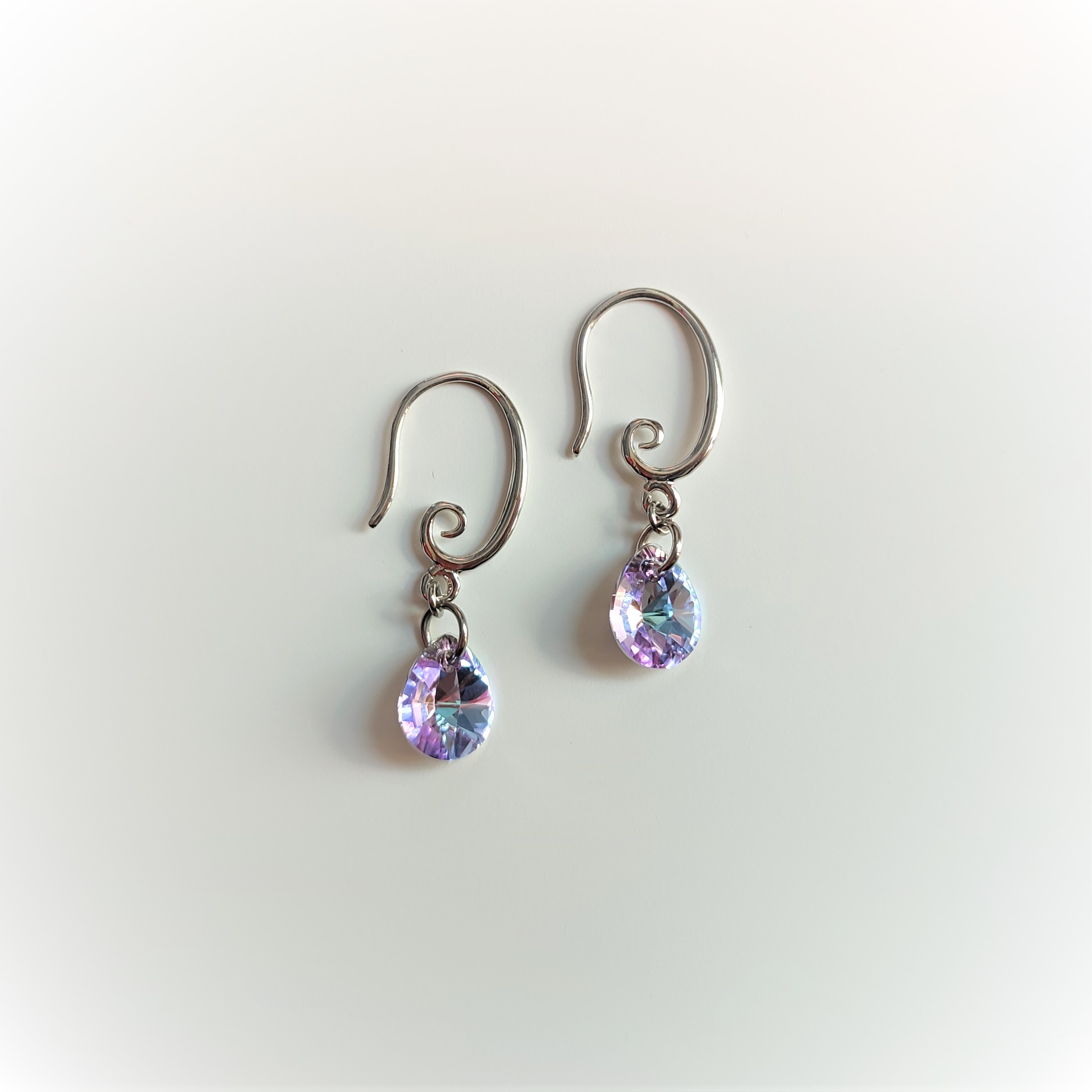 69€ Alliage argenté, chaîne en acier inoxydable et gouttes mauves Attaches en silicone Assorti aux boucles d’oreilles Emma