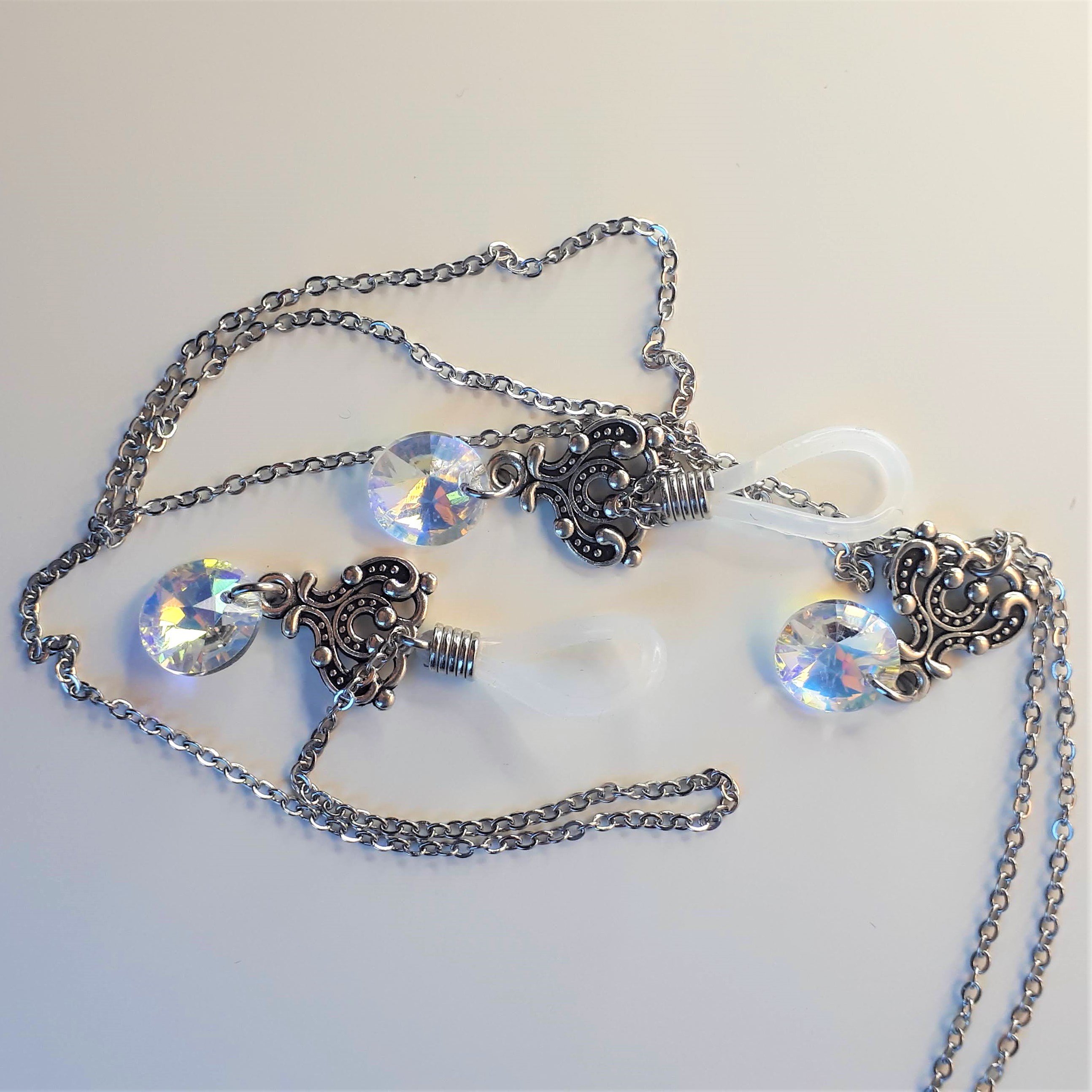 67€ Alliage argenté ou doré, chaîne en acier inoxydable naturel ou plaqué or et perles en verre transparent Attaches en silicone