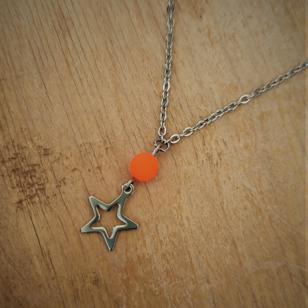 48€ Acier inoxydable naturel et perle en verre orange fluo (autre couleur possible)