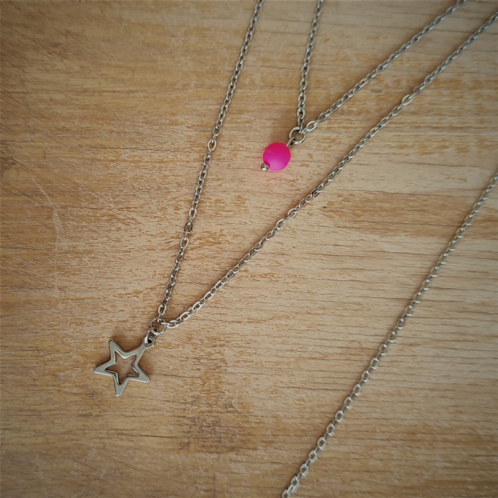57€ Acier inoxydable naturel et perle en verre rose fluo (autre couleur possible)