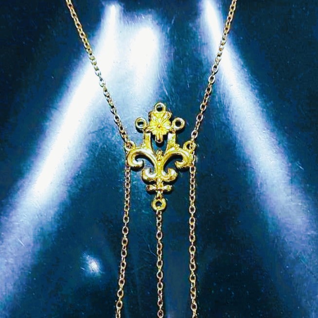 48€ Alliage argenté ou doré, chaîne en acier inoxydable naturel ou plaqué or, dentelle noire élastique, perle en verre rouge ou vertAssorti au string Lady String
